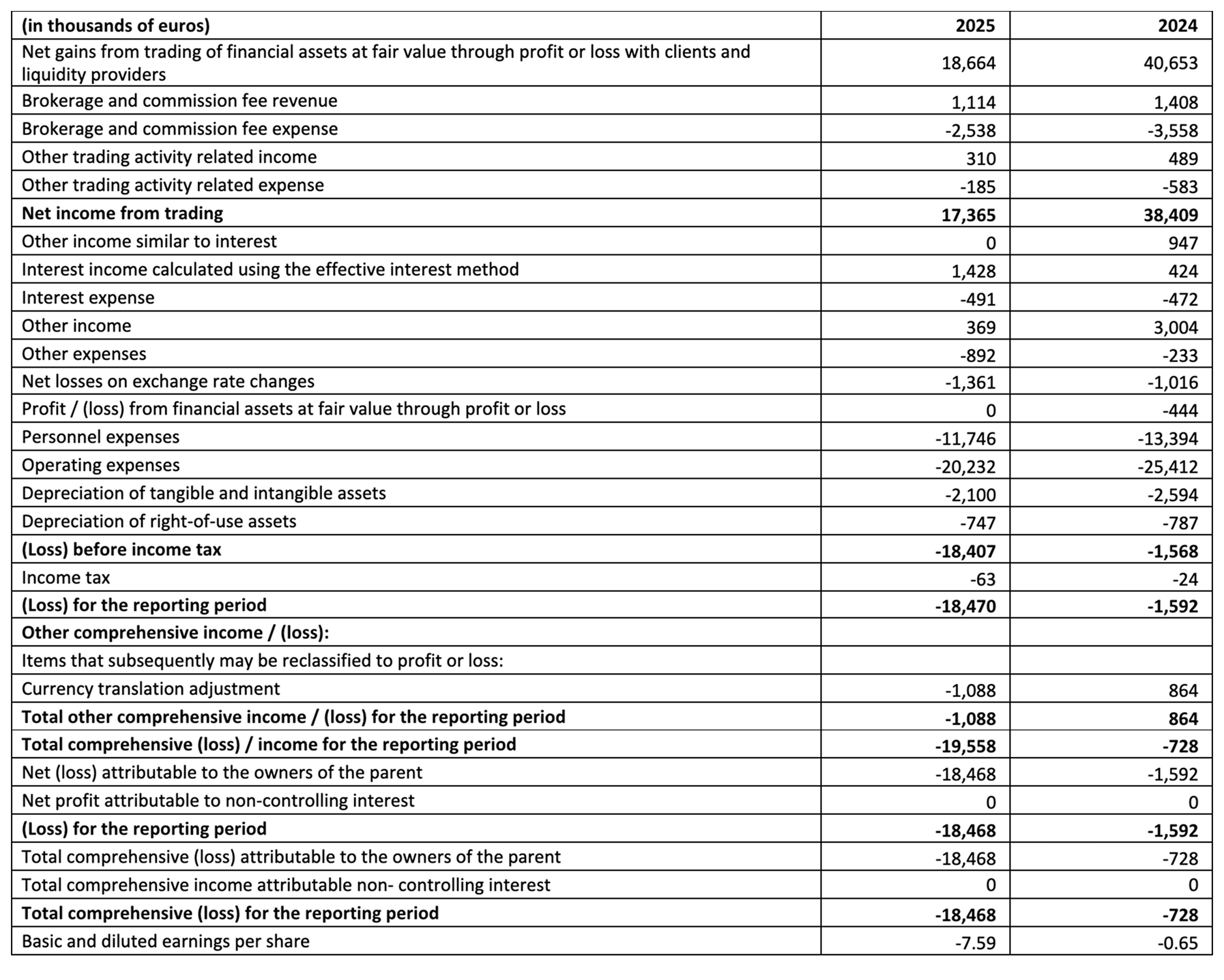 - Net trading income was EUR 17.4 million (2024: EUR 38.4 million).